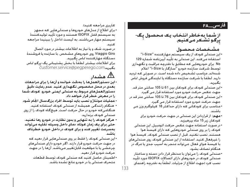 Téléchargez la notice de votre صندلی ماشین au format PDF gratuitement ! Retrouvez votre notice Viaggio Giro - PEG PEREGO et reprennez votre appareil électronique en main. Sur cette page sont publiés tous les documents nécessaires à l'utilisation de votre appareil Viaggio Giro de la marque PEG PEREGO.