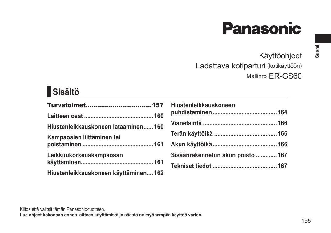 Käyttöohjeet Ladattava kotiparturi (kotikäyttöön) Mallinro ER‑GS60
