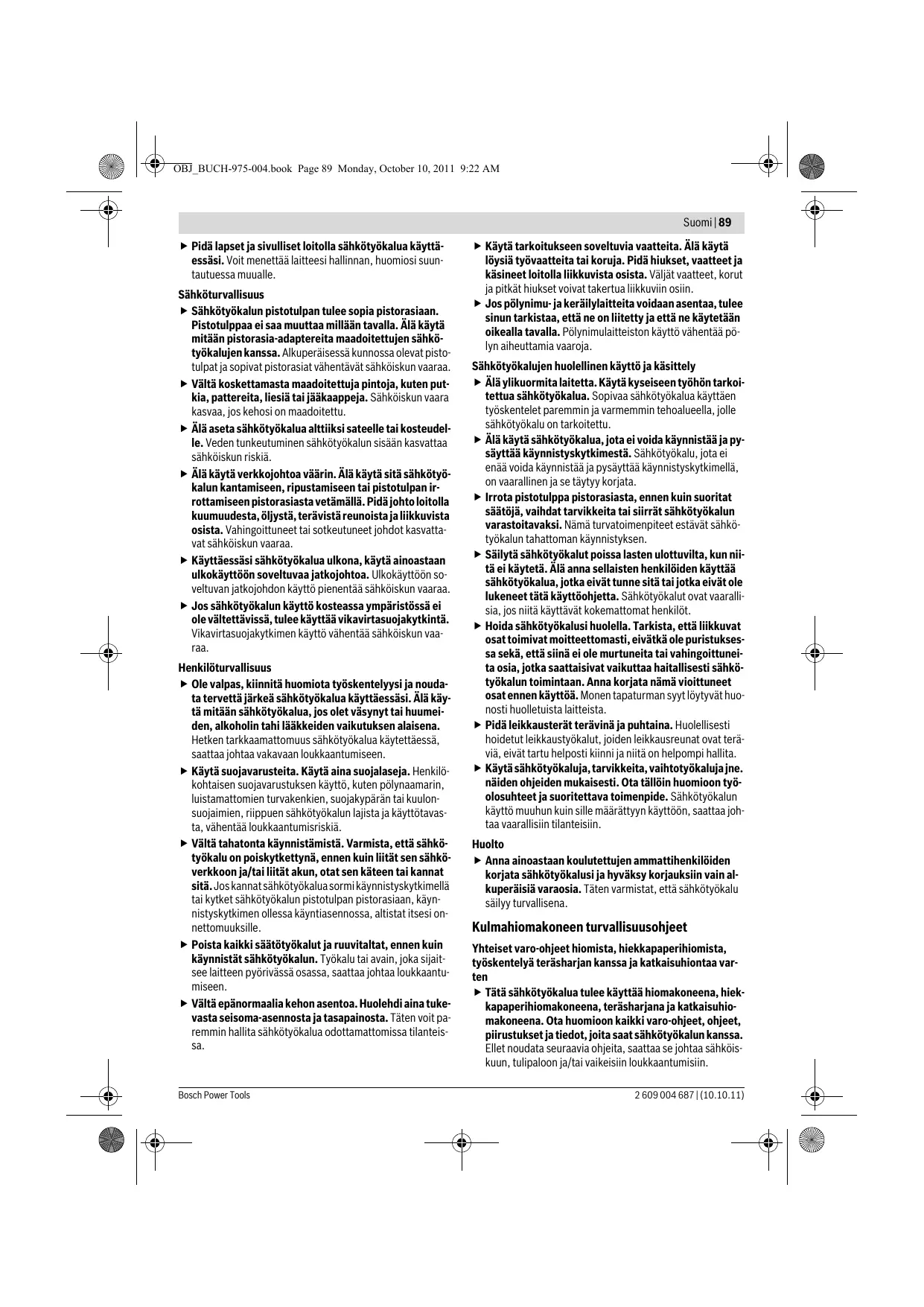 2,0 /II Ota huomioon sähkötyökalusi mallikilvessä oleva tuotenumero. Yksittäisten koneiden kauppanimitys saattaa vaihdella. Standardinmukaisuusvakuutus Vakuutamme yksin vastaavamme siitä, että kohdassa ”Tekniset tiedot” selostettu tuote vastaa seuraavia standardeja tai standardoituja asiakirjoja: EN 60745 direktiivien 2011/65/EU, 2004/108/EY, 2006/42/EY määräysten mukaan. Tekninen tiedosto (2006/42/EY): Robert Bosch GmbH, PT/ETM9, D-70745 Leinfelden-Echterdingen 2 609 004 687 | (10.10.11) Dr. Egbert Schneider Senior Vice President Engineering Dr. Eckerhard Strötgen Engineering Director PT/ESI Robert Bosch GmbH, Power Tools Division D-70745 Leinfelden-Echterdingen
