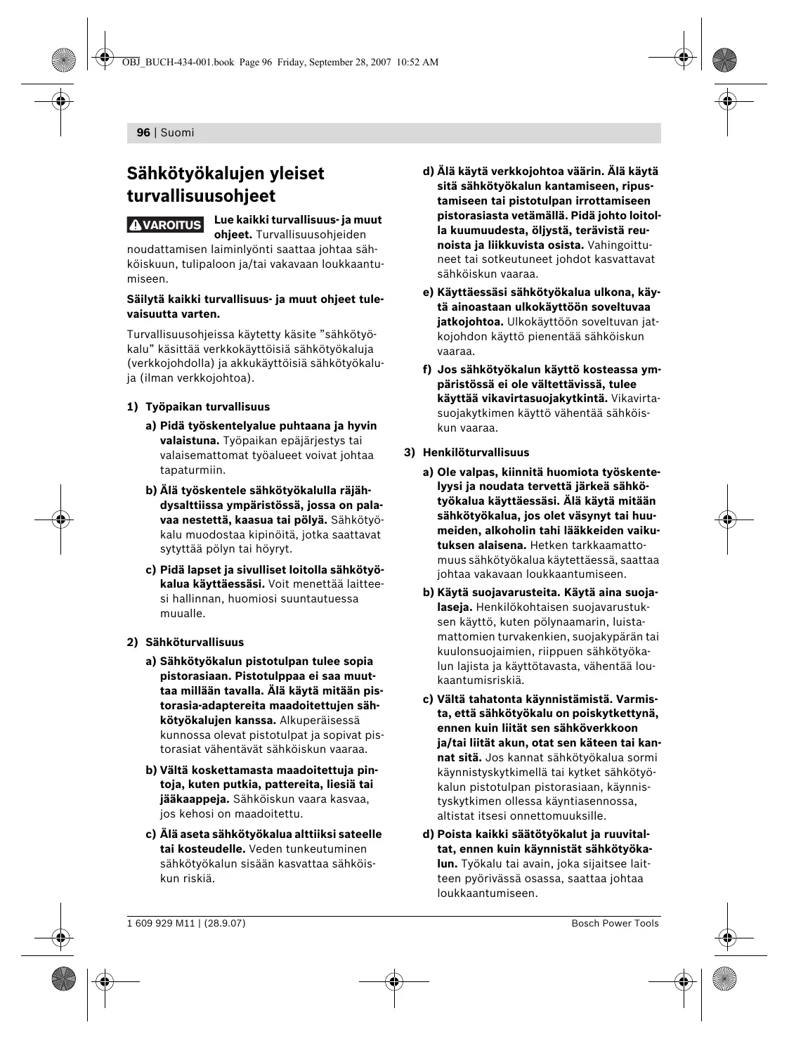 Sähkötyökalujen yleiset turvallisuusohjeet fi