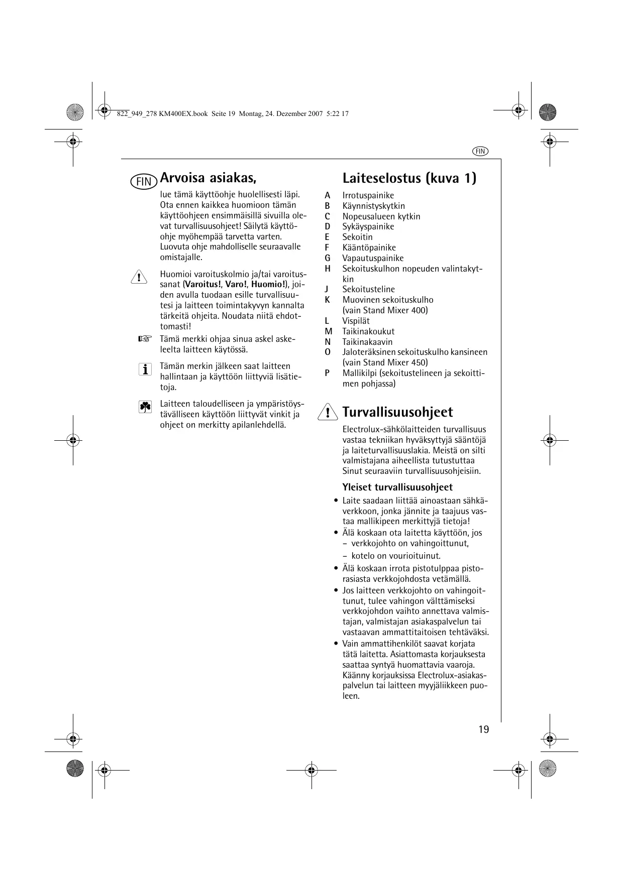 KÄYTTÖOHJE ASM450 AEG-ELECTROLUX