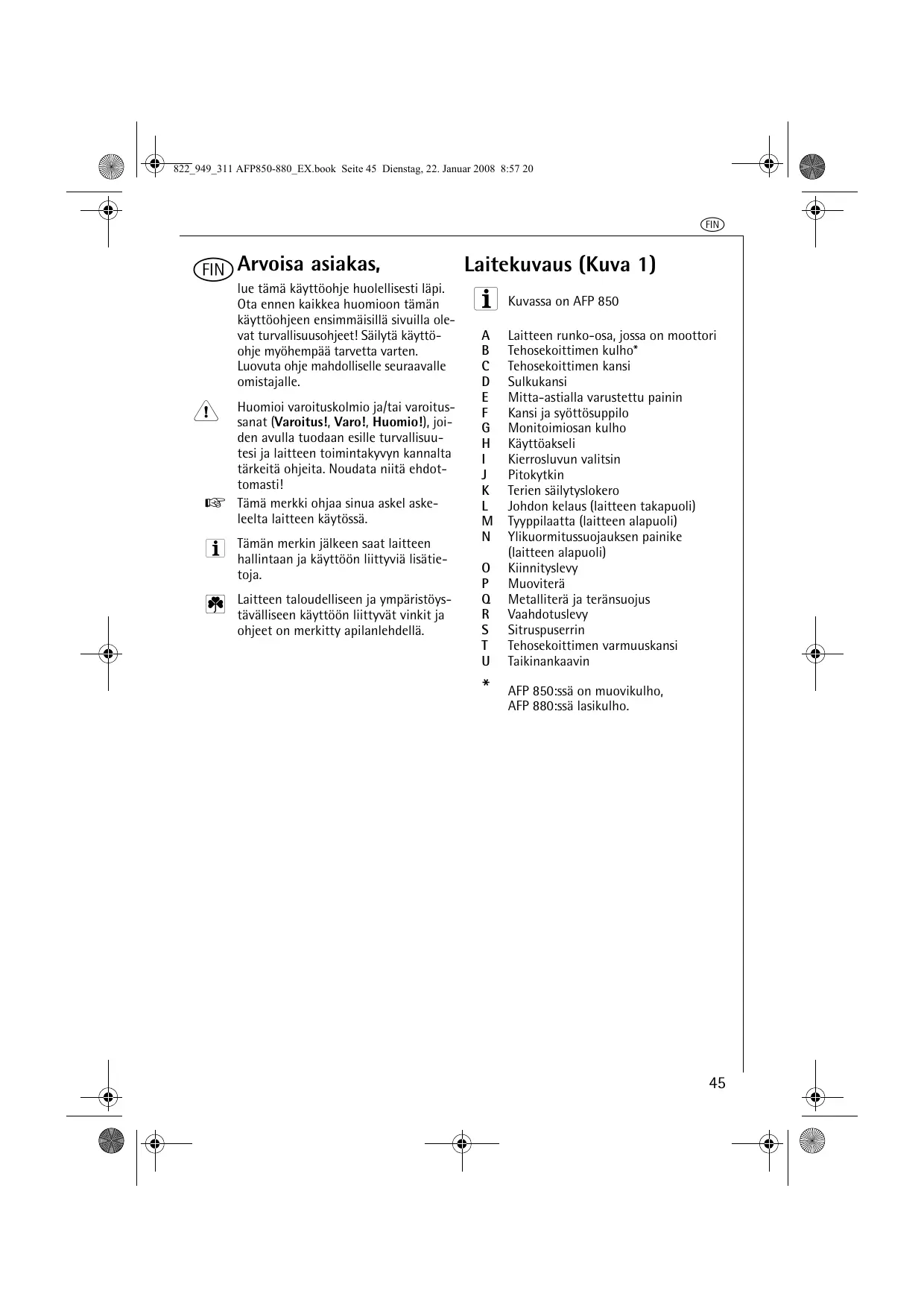 KÄYTTÖOHJE AFP880 AEG-ELECTROLUX
