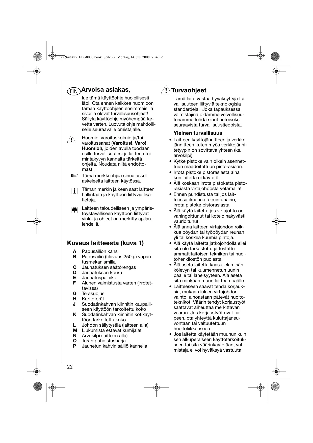 KÄYTTÖOHJE EEG8000 AEG-ELECTROLUX