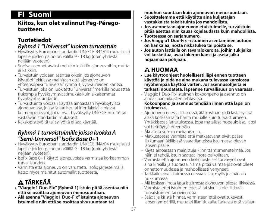 KÄYTTÖOHJE VIAGGIO1 DUO-FIX PEG PEREGO