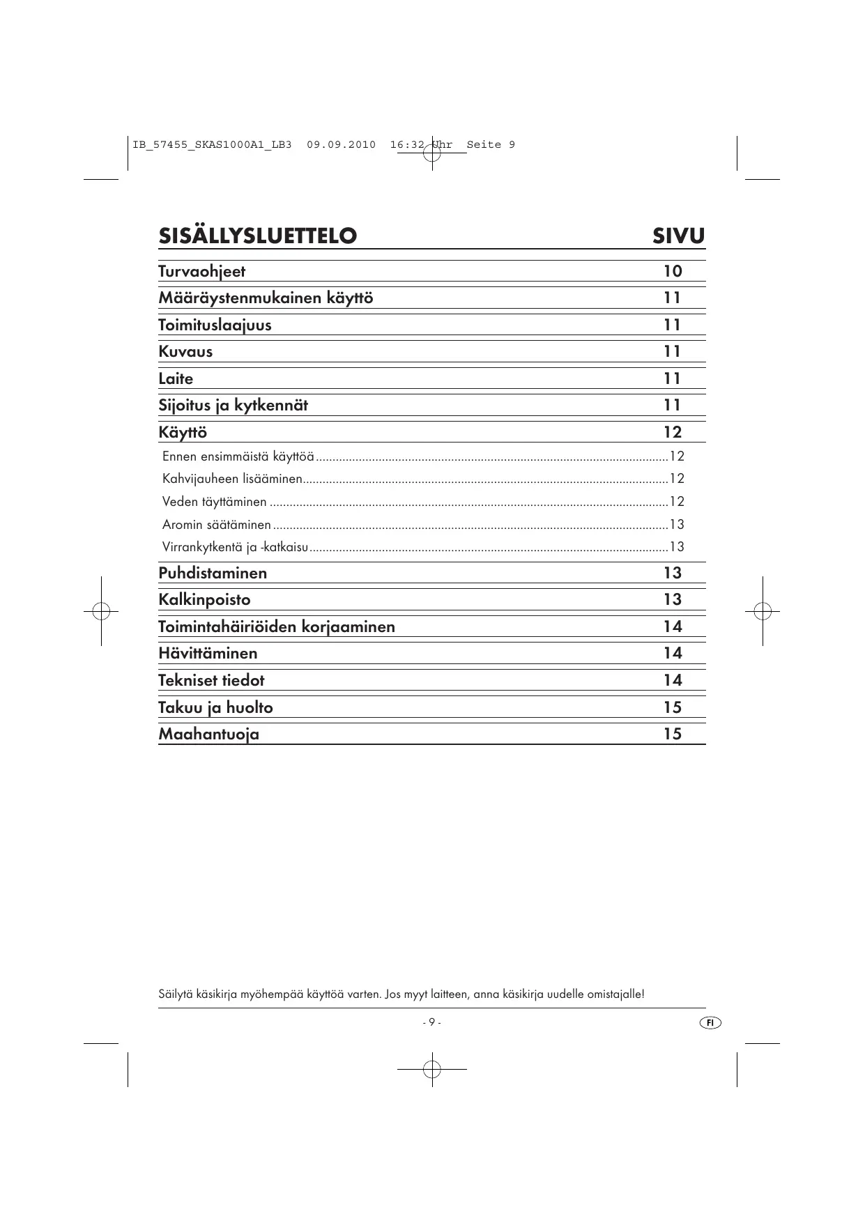 D Puhdistaminen 13 À Kalkinpoisto 13 À Ne Ne | Toimintahäirisiden korjaaminen 14 | Hävittäminen 14 Tekniset tiedot 14 Takuu ja huolto 15 Maahantuoja 15
