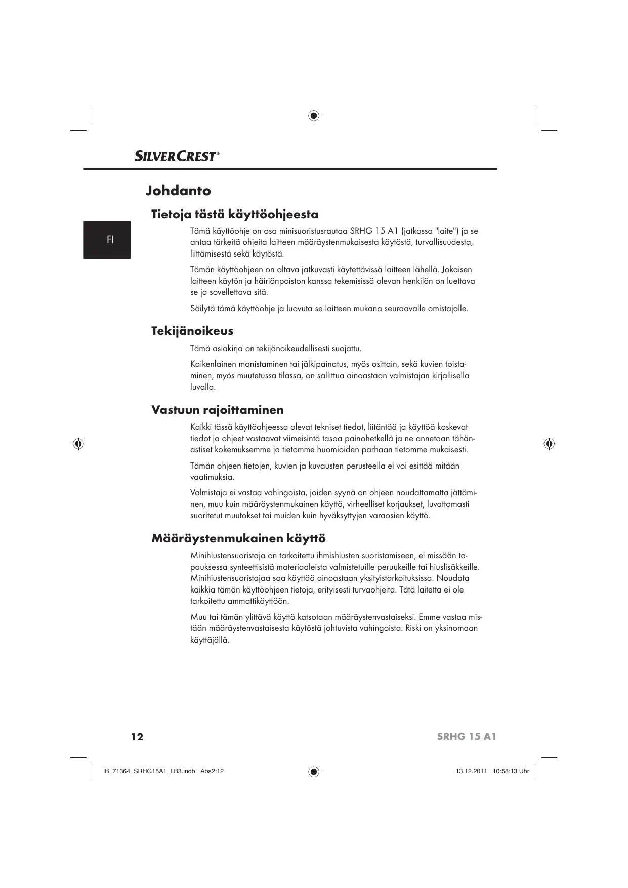 KÄYTTÖOHJE SRHG 15 A1 SILVERCREST