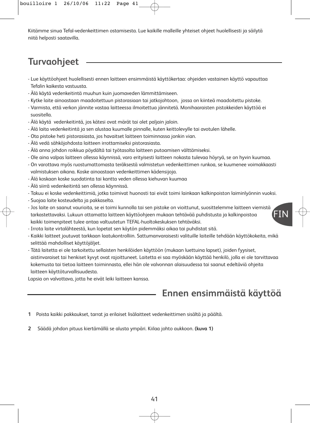 KÄYTTÖOHJE KETTLE TEFAL
