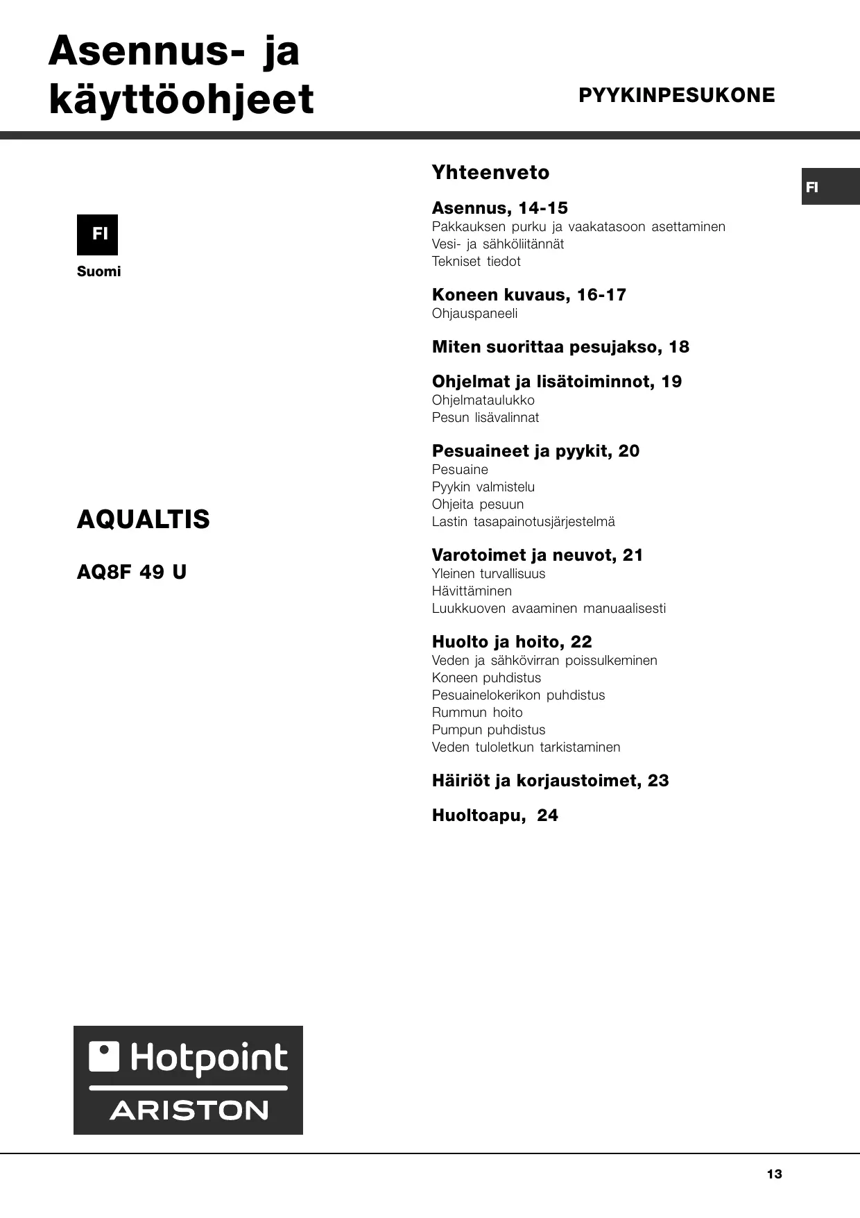KÄYTTÖOHJE AQ8F 49 U HOTPOINT