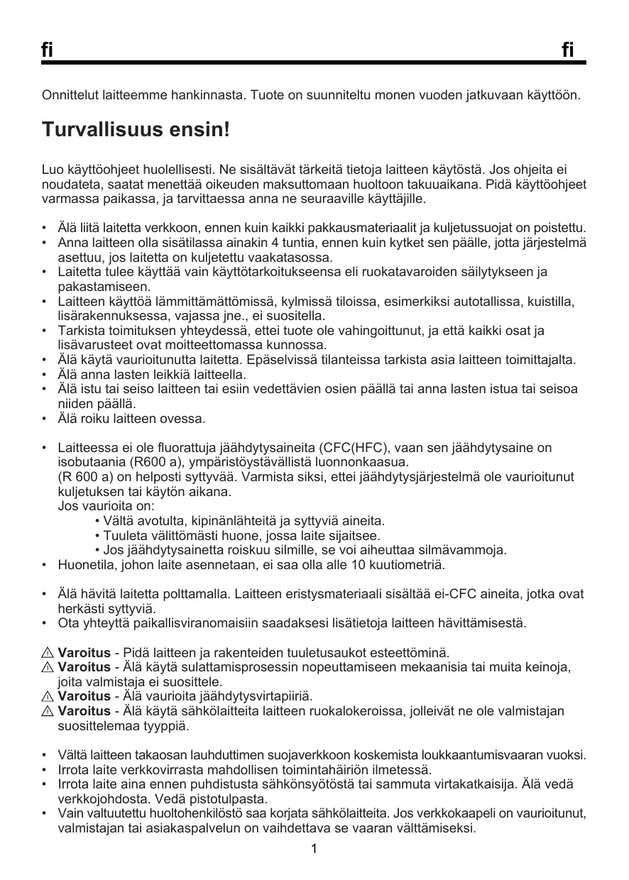 + Votre appareil ne contient pas de réfrigérants fluorés (CFC/HFC) mais un réfrigérant isobutane