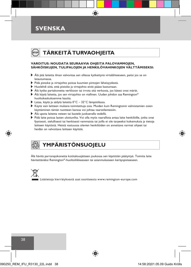Lisätietoja kierrätyksestä saat osoitteesta www.remington-europe.com