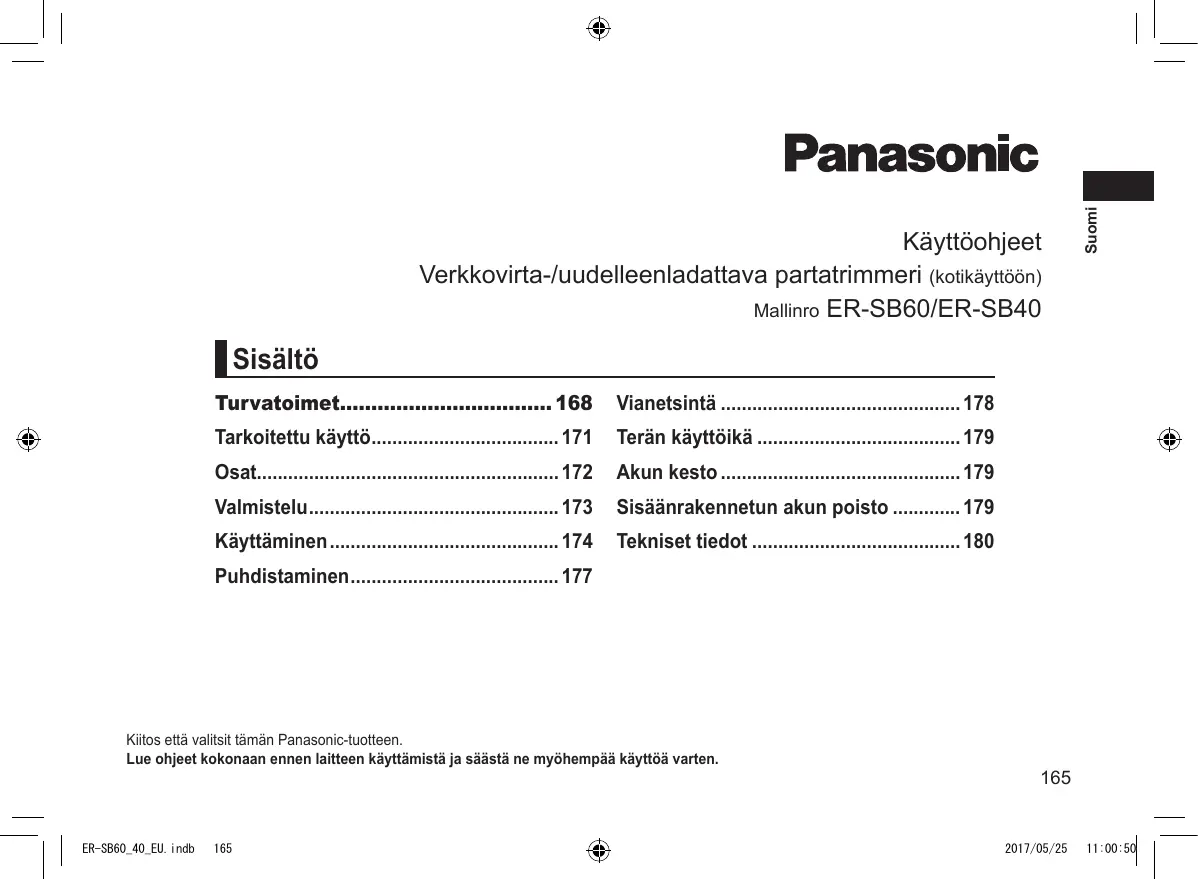 KÄYTTÖOHJE ERSB60 PANASONIC