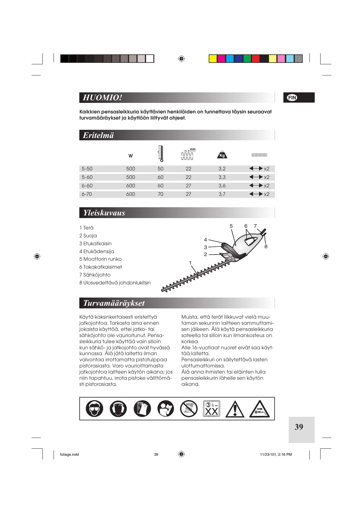 Kaikkien pensasleikkuria käytävien henkilöiden on tunnettava täysin seuraavat turvamäräykset ja käyttoön liittyvät ohjeet.