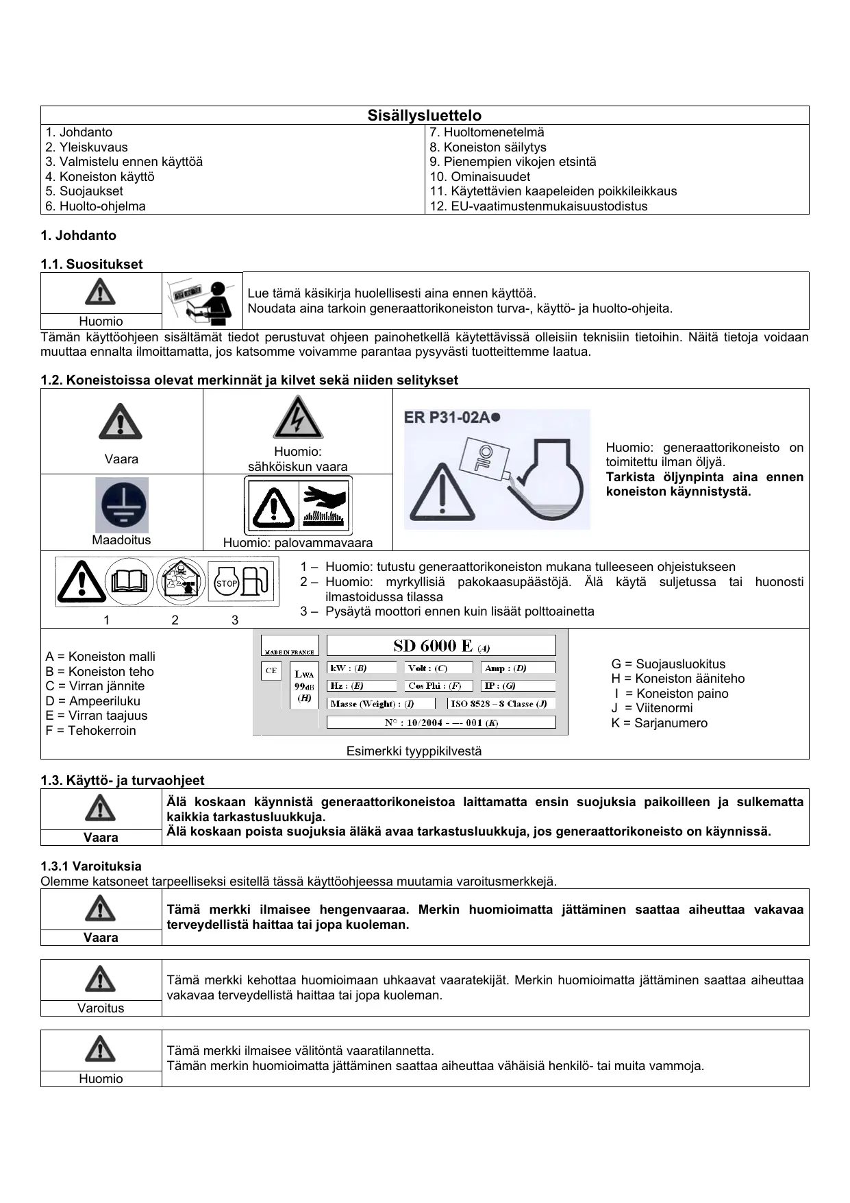 KÄYTTÖOHJE NEO 3000 2600W SDMO