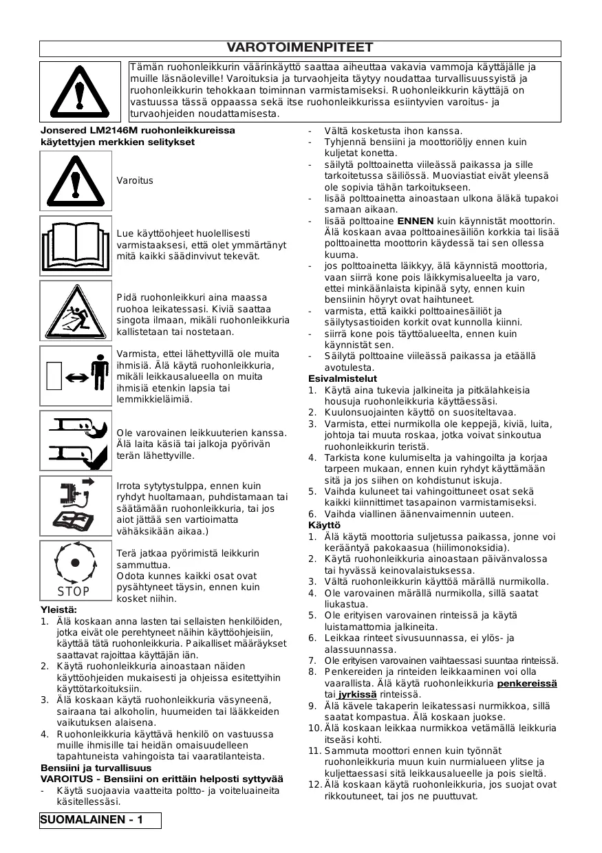 KÄYTTÖOHJE LM 2146 M JONSERED