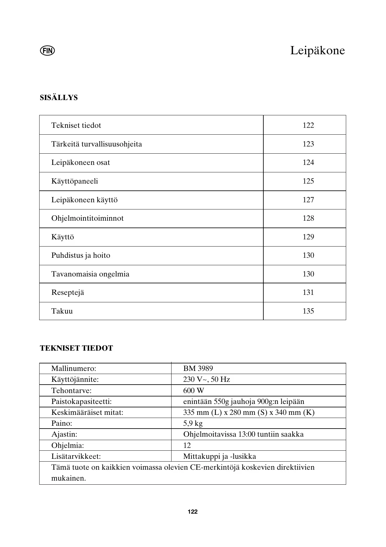 | Tekniset tiedot | 122 |