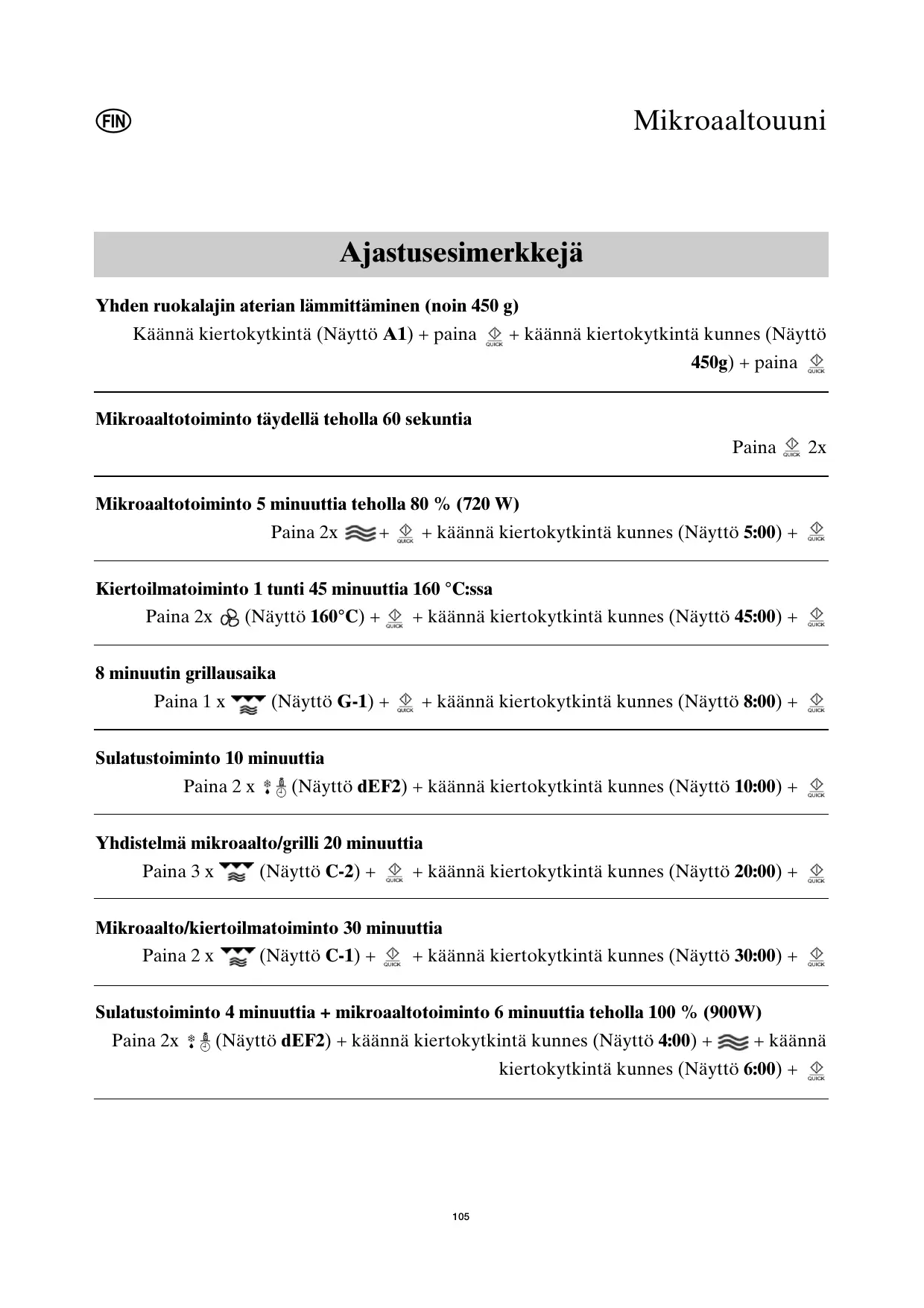 2. Programmez la fonction micro-ondes. 3. Appuyez sur la touche . L'écran affiche les symboles des programmes sélectionnés. 5 bips sonores indiquent la fin de l'ensemble du programme. 39