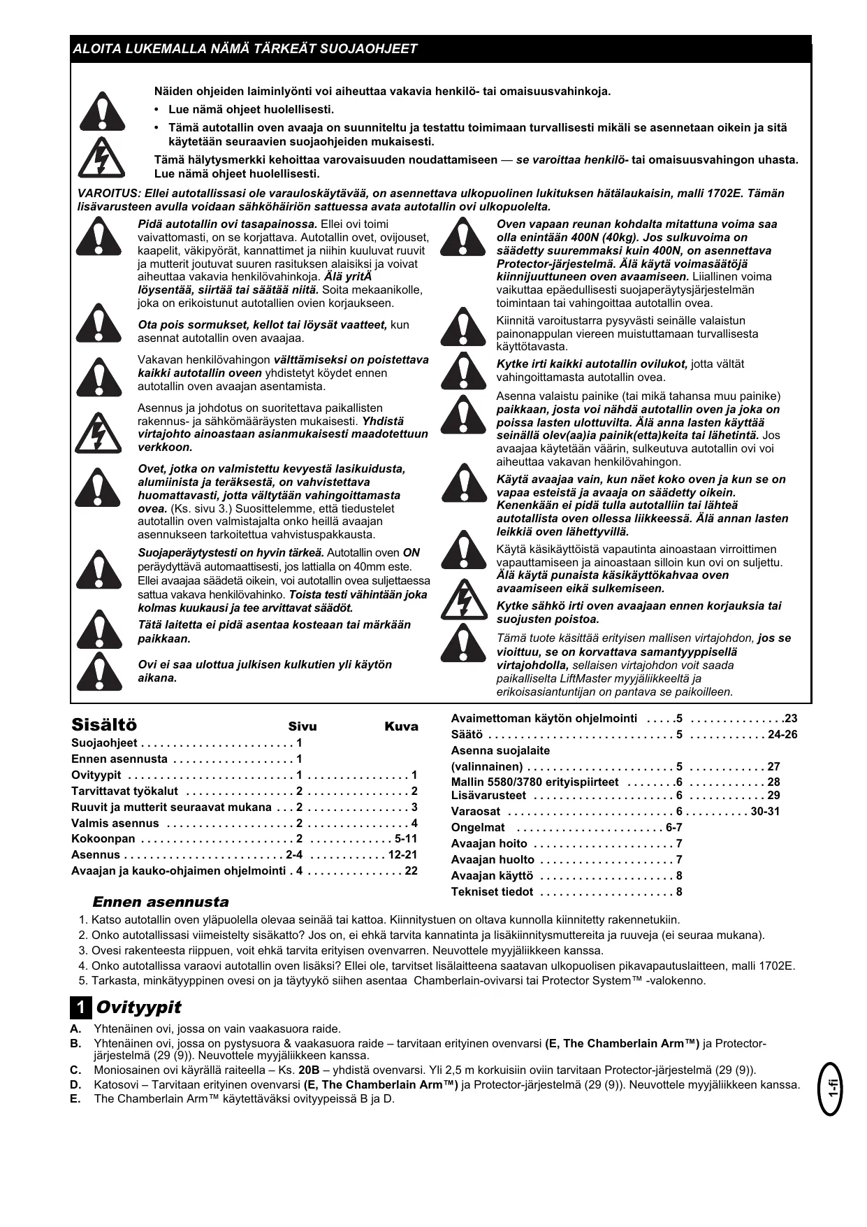 KÄYTTÖOHJE 5580 CHAMBERLAIN