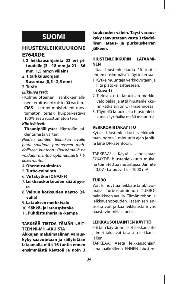 SUOMI HIUSTENLEIKKUUKONE E764XDE