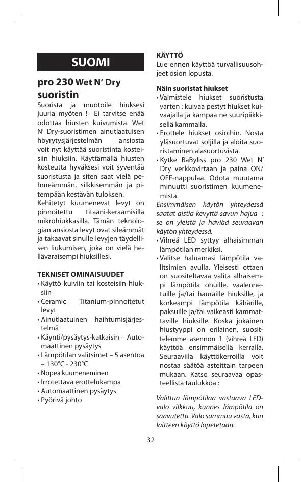 Retrouvez gratuitement la notice de l'appareil ST30E BABYLISS au format PDF.