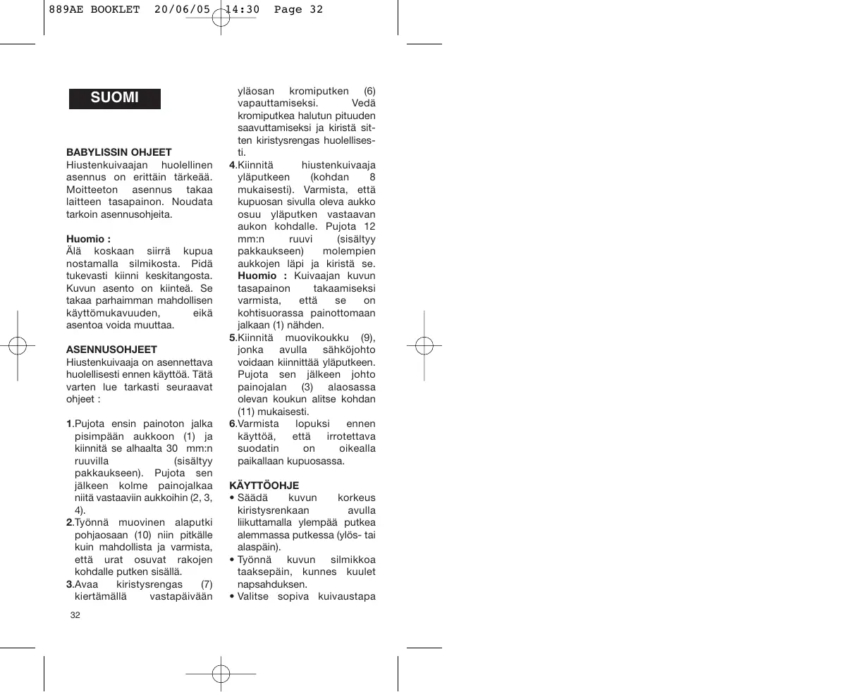 KÄYTTÖOHJE 889AE, 889AE BABYLISS