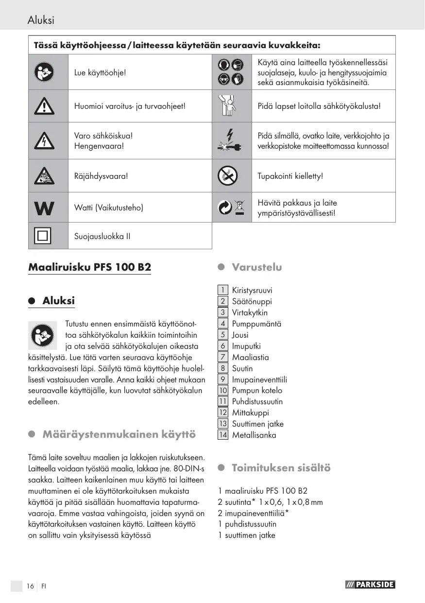 KÄYTTÖOHJE PFS 100 B2 PARKSIDE