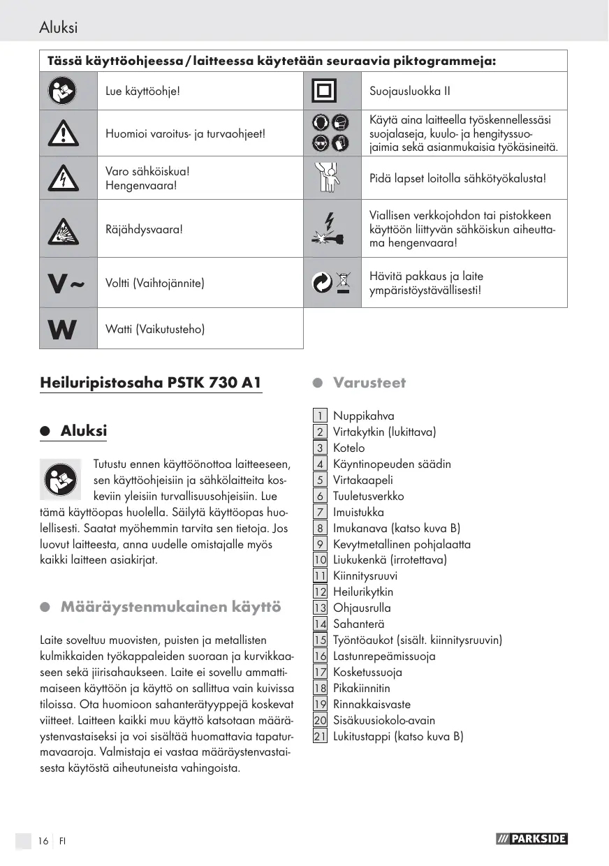 KÄYTTÖOHJE PSTK 730 A1 PARKSIDE