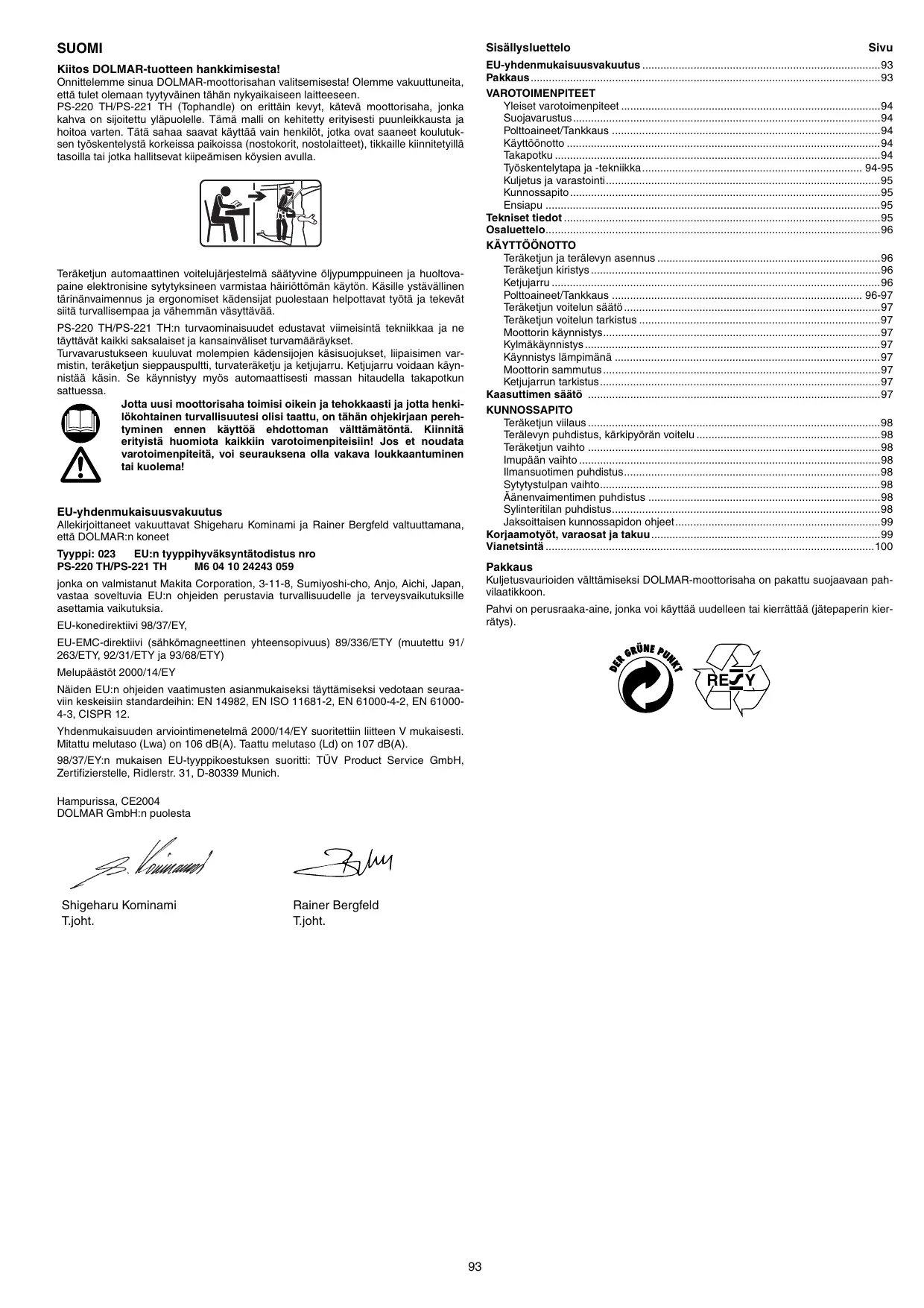 PS-221 TH - Moottorisaha DOLMAR - Notice d'utilisation et mode d'emploi gratuit