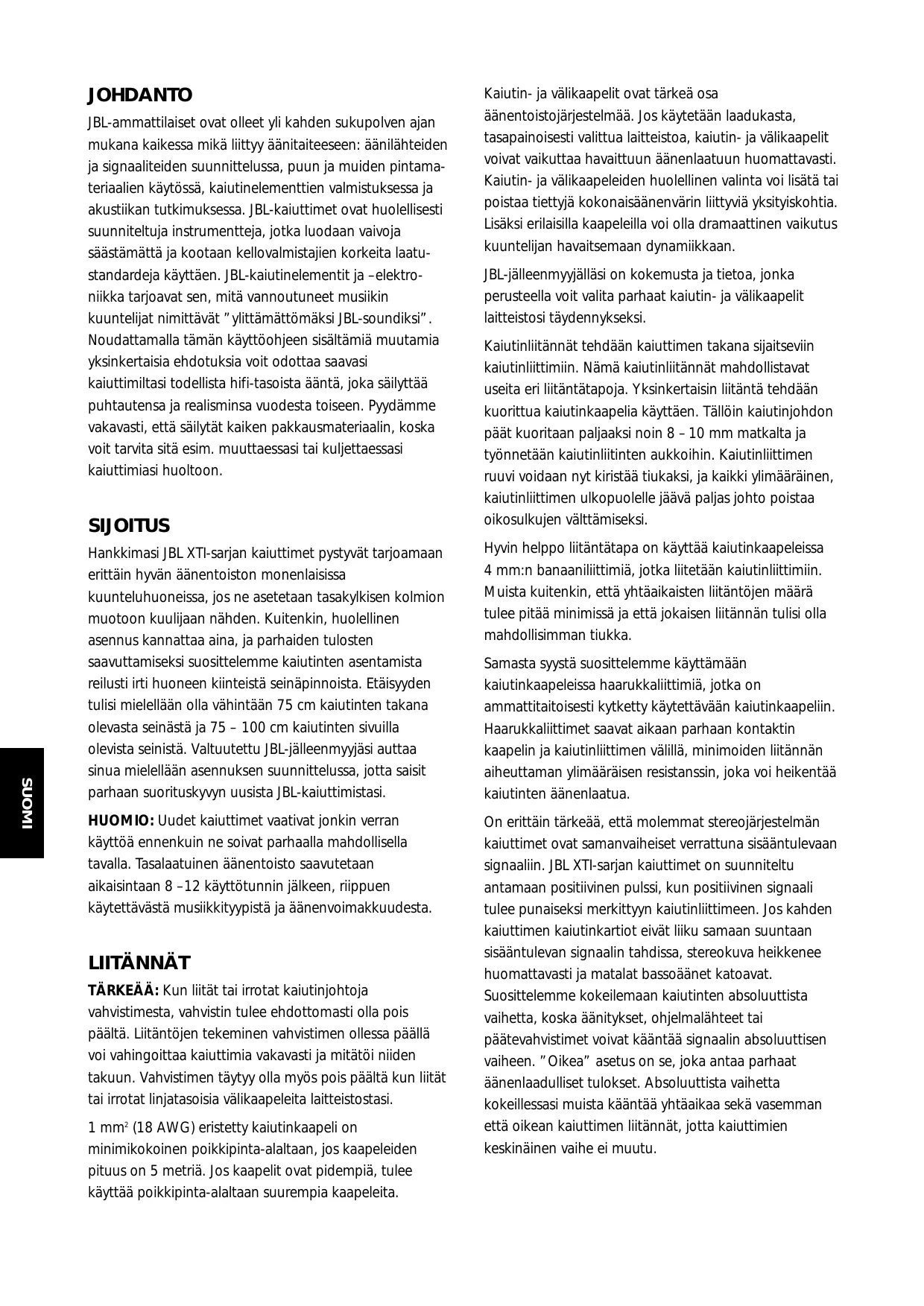 XTI 20 - Kaiutin JBL - Notice d'utilisation et mode d'emploi gratuit