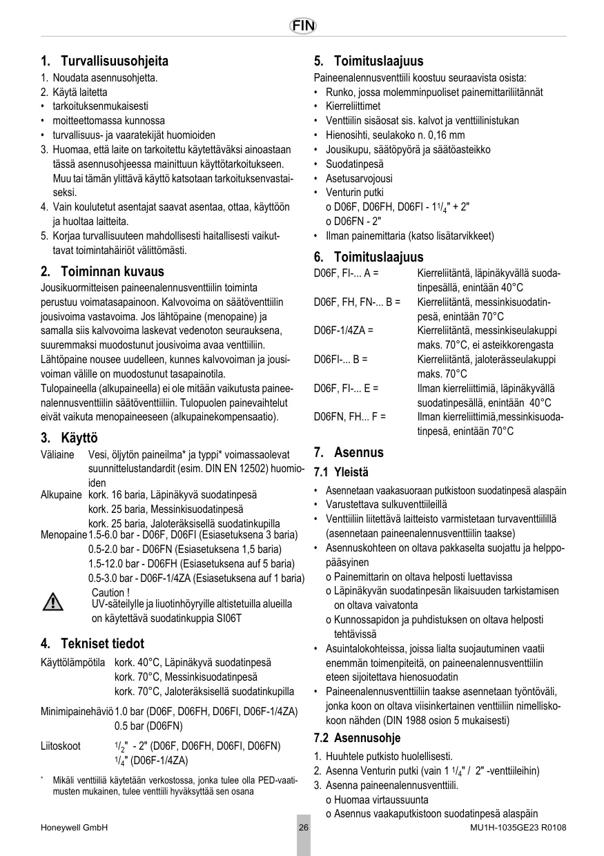 KÄYTTÖOHJE D06F-1-4ZA HONEYWELL