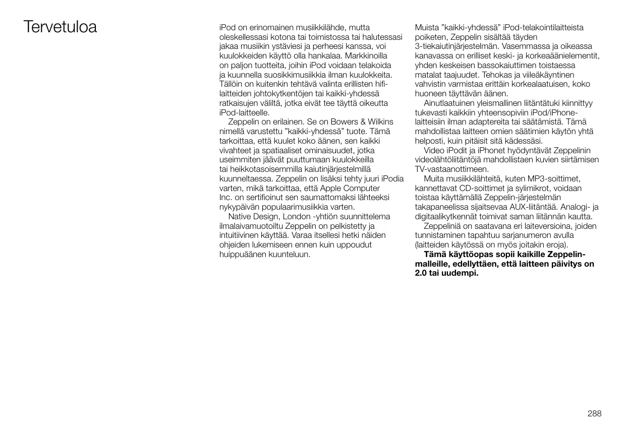 KÄYTTÖOHJE B&W ZEPPELIN B&W