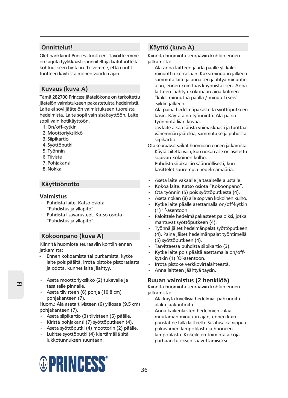 Téléchargez la notice de votre Keittiökone au format PDF gratuitement ! Retrouvez votre notice YONANAS - PRINCESS et reprennez votre appareil électronique en main. Sur cette page sont publiés tous les documents nécessaires à l'utilisation de votre appareil YONANAS de la marque PRINCESS.