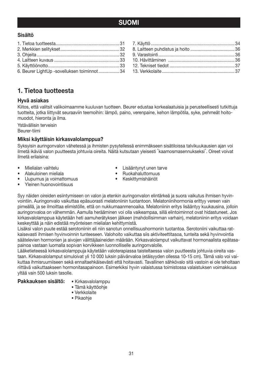 TL 100 - Valoterapia lamppu BEURER - Notice d'utilisation et mode d'emploi gratuit