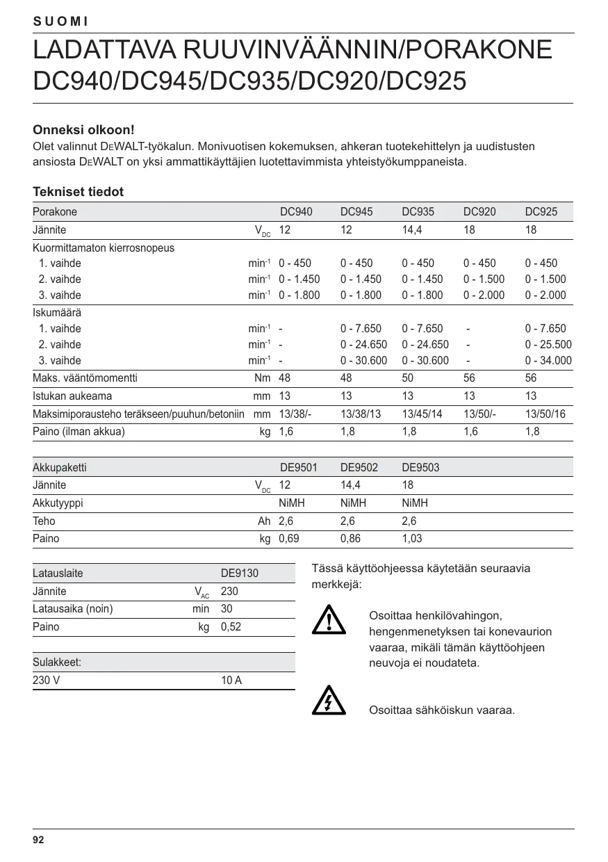 KÄYTTÖOHJE DC935KB DEWALT