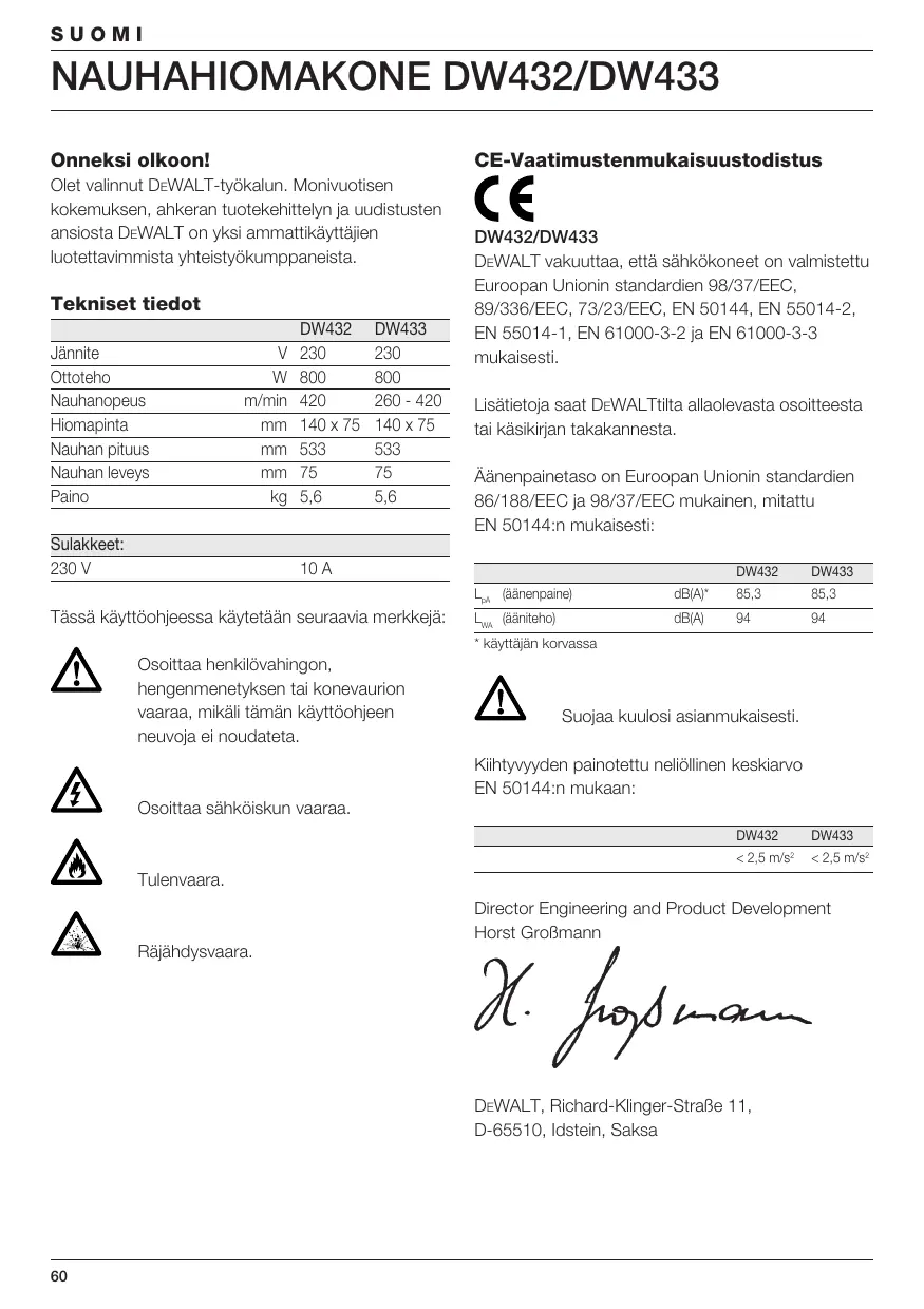 DW433K - Hiomakone DEWALT - Notice d'utilisation et mode d'emploi gratuit
