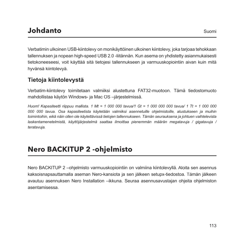 KÄYTTÖOHJE EXTERNAL HARD DRIVE USB 2.0 VERBATIM
