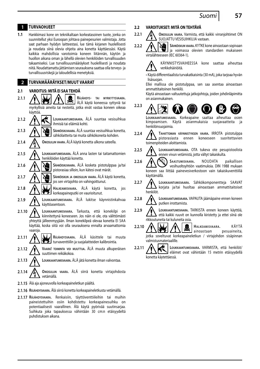 2.1.16 Danger d’explosion. Ne déplacez pas l’appareil en tirant le tuyau haute pression.