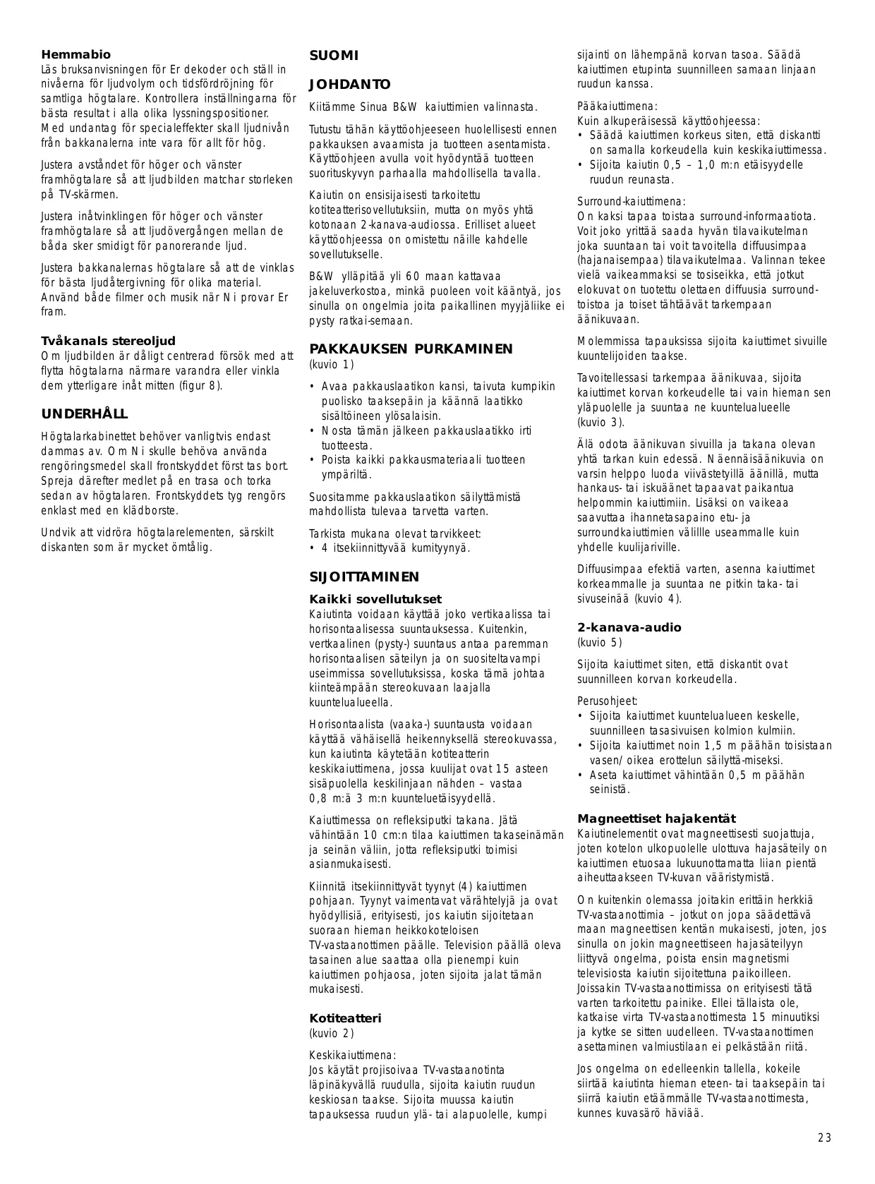 KÄYTTÖOHJE B&W LCR6 S2 B&W