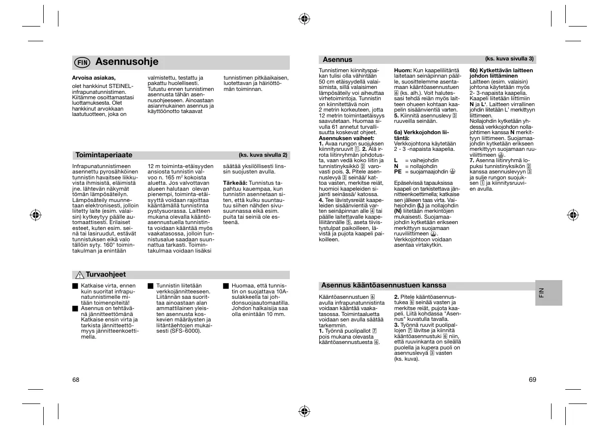 Arvoisa asiakas, let hankkinut STEINEL- infrapunatunnistimen. Kitmme osprtamasiai Iuottamuksesta. O Pantin avoan laatutuotieen, joka on