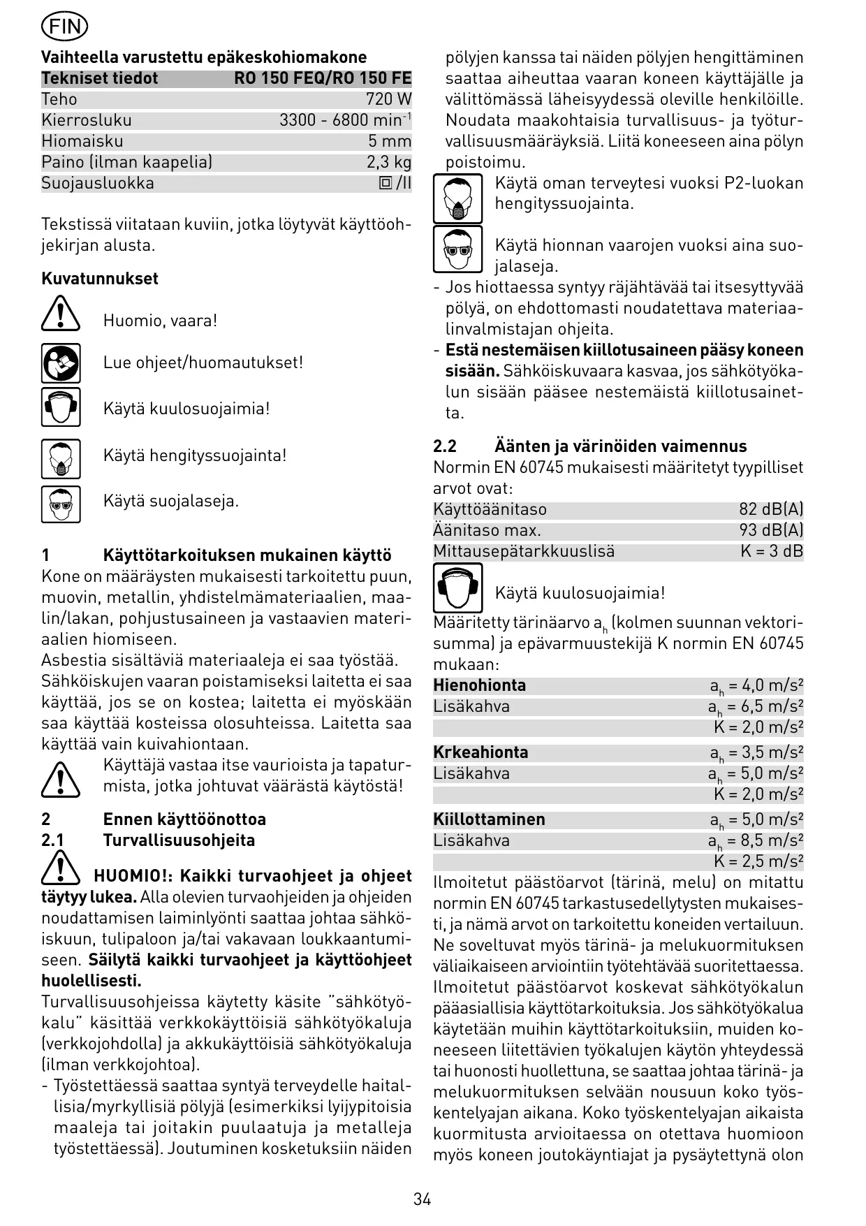 KÄYTTÖOHJE RO 150 FEQ FESTOOL