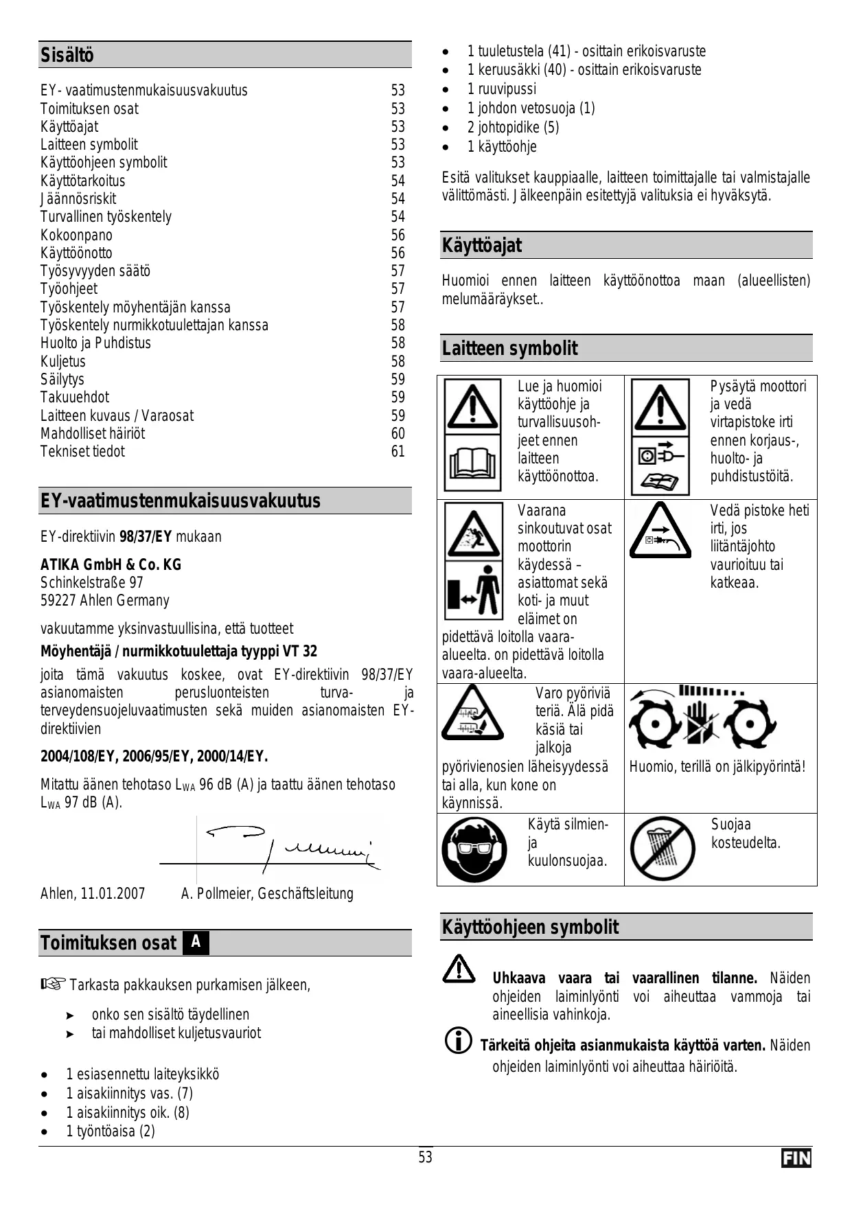 Löydä laitteen käyttöohje ilmaiseksi VT 32 ATIKA PDF-muodossa.