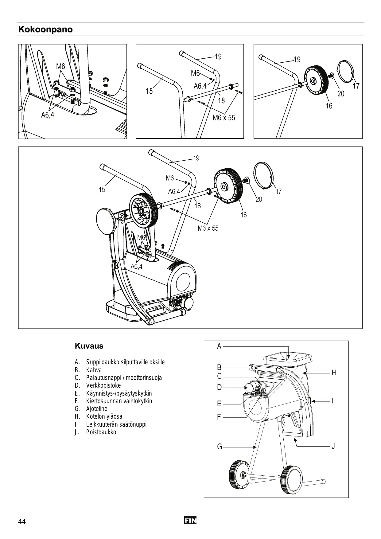 | Kone ei vedä silputtavaa materiaialia kunnolla sisäänpäin | - leikkuuterä pyörii takaisinpäin. Kytkimen asenti ei ole oikein | - käännä katkaisinvipu oikeaan asentoon |