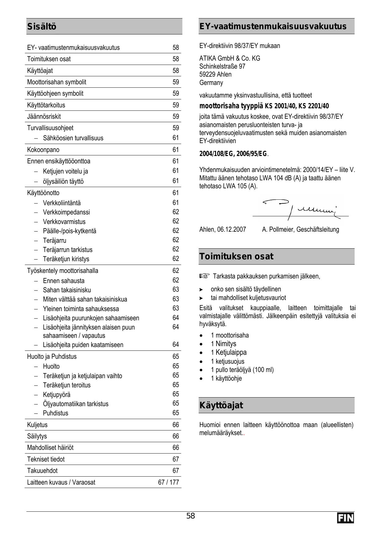 KS 2201 - Moottorisaha ATIKA - Ilmainen käyttöohje ja opas