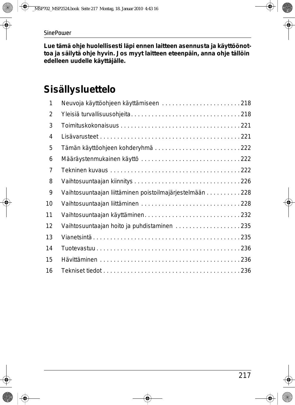 2 Yleisiä turvallisuusohjeita. 218
