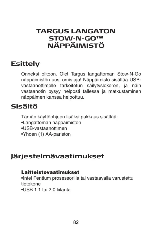 Téléchargez la notice de votre Tietokonetarvikkeet au format PDF gratuitement ! Retrouvez votre notice AKP07EU - TARGUS et reprennez votre appareil électronique en main. Sur cette page sont publiés tous les documents nécessaires à l'utilisation de votre appareil AKP07EU de la marque TARGUS.
