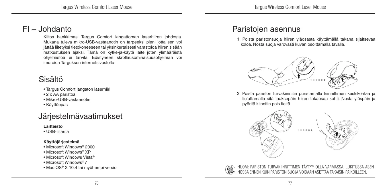 KÄYTTÖOHJE WIRELESS COMFORT LASER MOUSE TARGUS