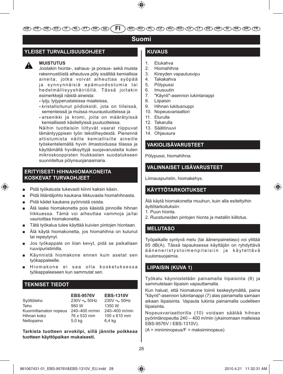 KÄYTTÖOHJE EBS9576VFHG RYOBI