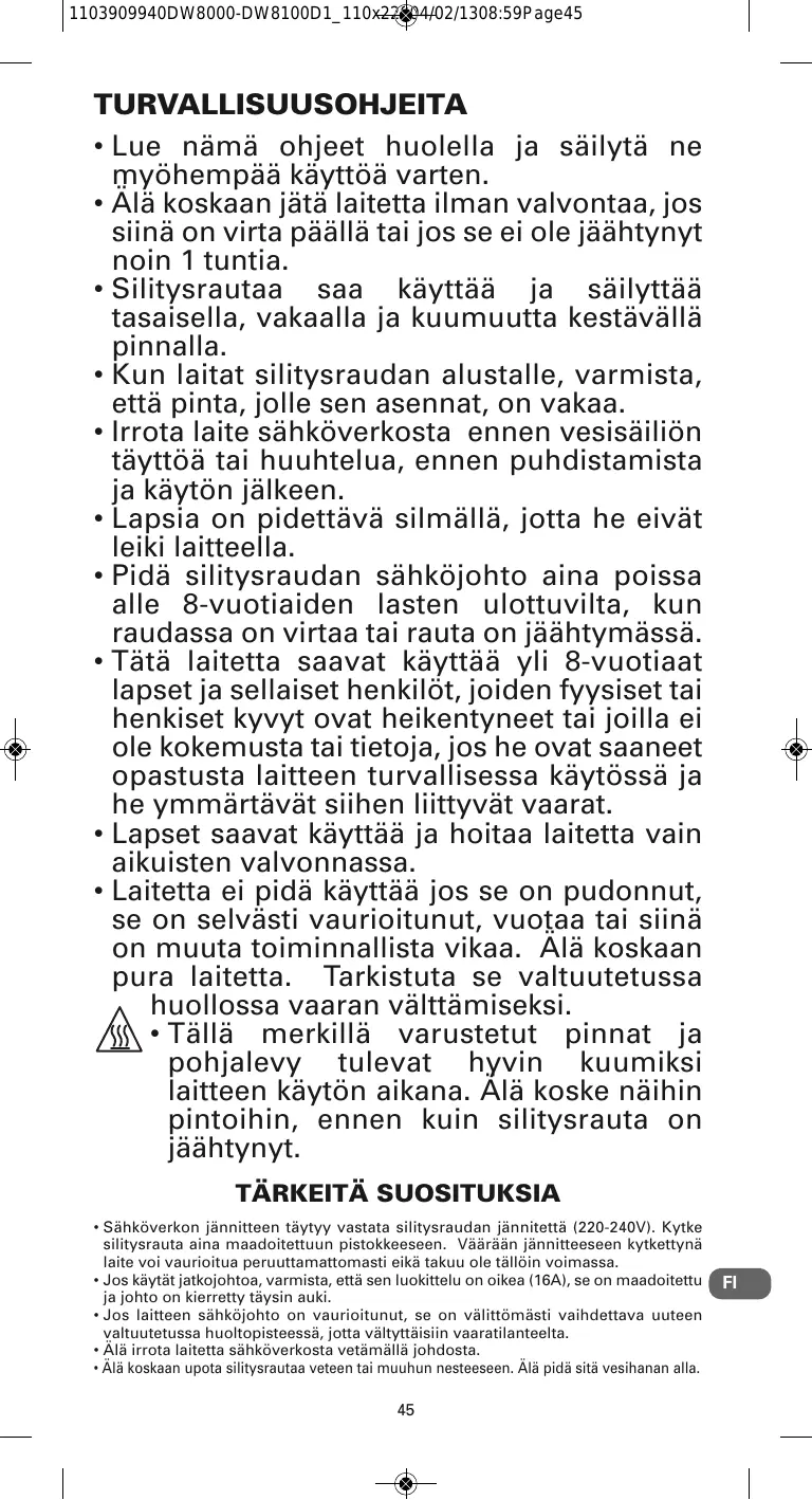 Téléchargez la notice de votre Silitysrauta au format PDF gratuitement ! Retrouvez votre notice PRO MASTER DW8112D1 - ROWENTA et reprennez votre appareil électronique en main. Sur cette page sont publiés tous les documents nécessaires à l'utilisation de votre appareil PRO MASTER DW8112D1 de la marque ROWENTA.