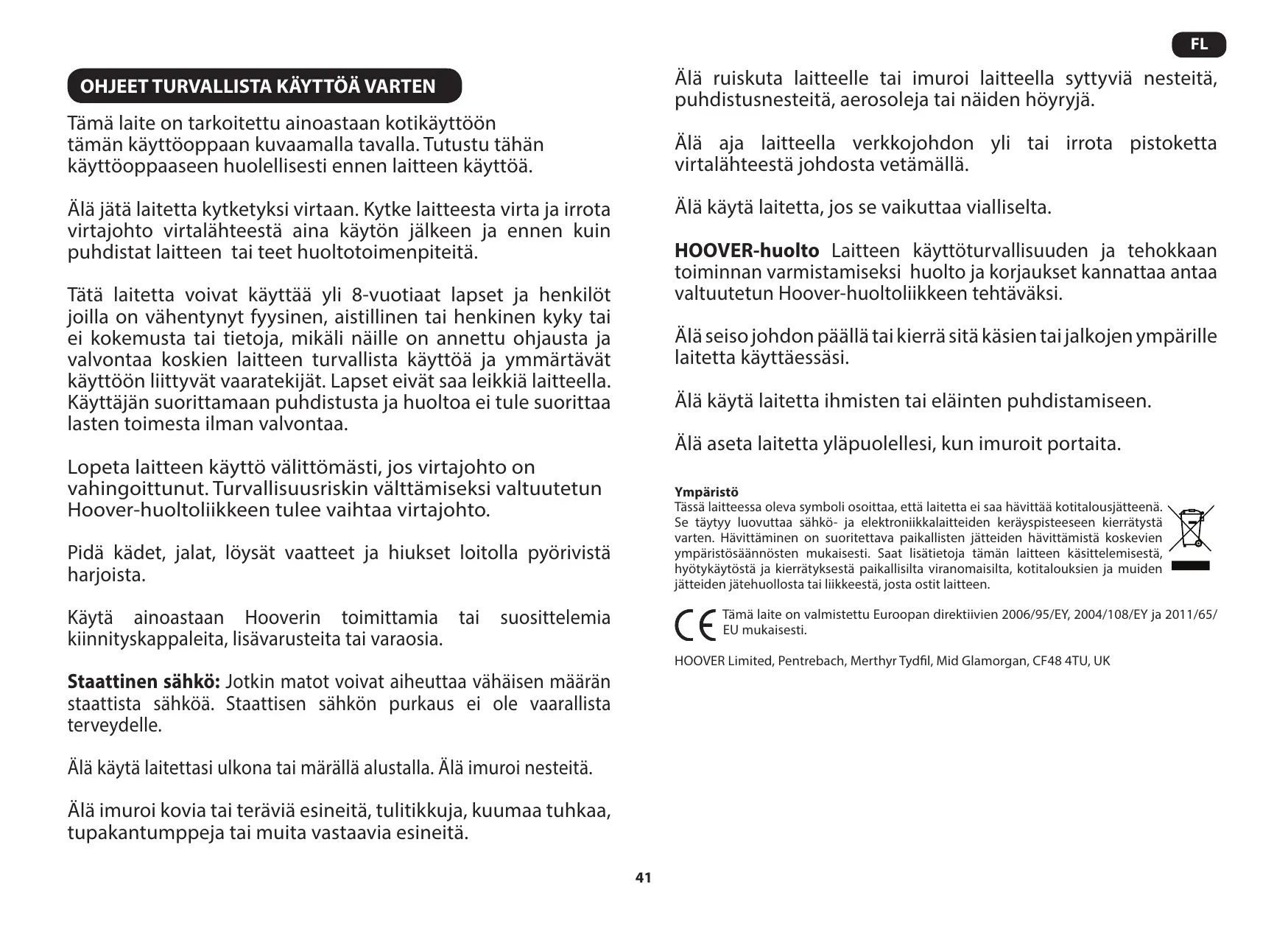 KÄYTTÖOHJE FREESPACE EVO FV70-FV50 HOOVER