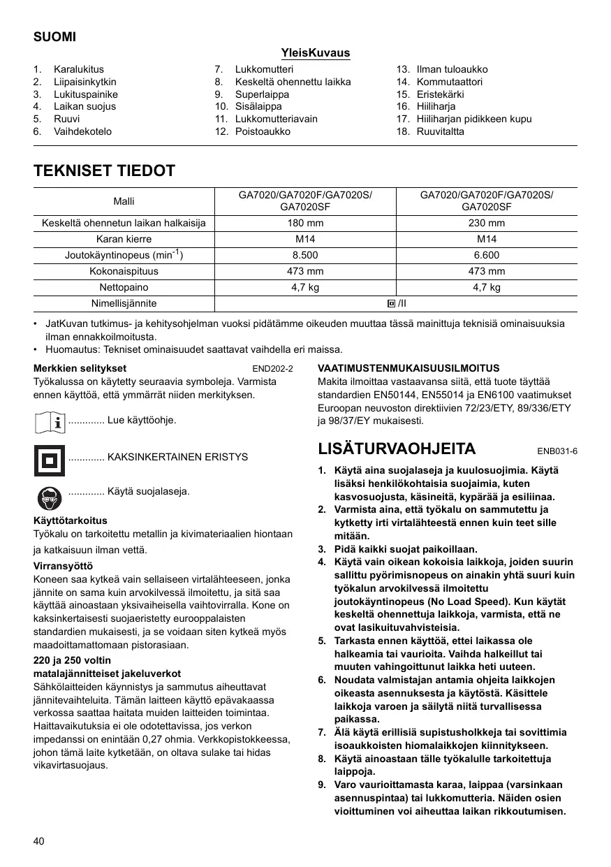 KÄYTTÖOHJE GA 9020 K MAKITA