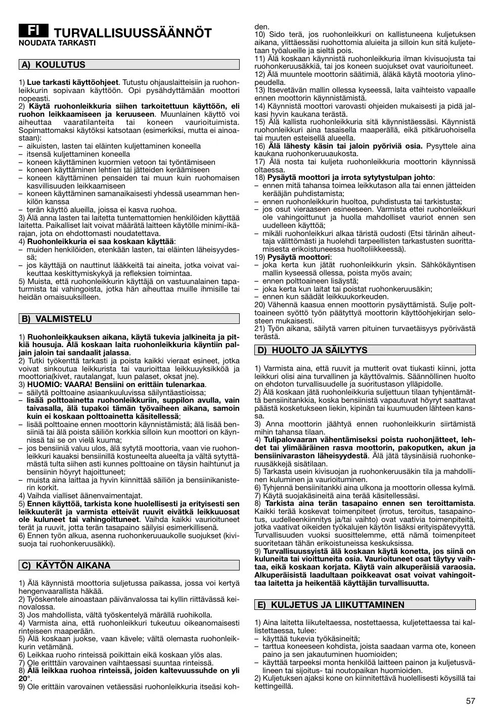 FR NORMES D’UTILISATION Pour le moteur et la batterie (si prévue), lire attentivement les manuels d’instructions relatifs.